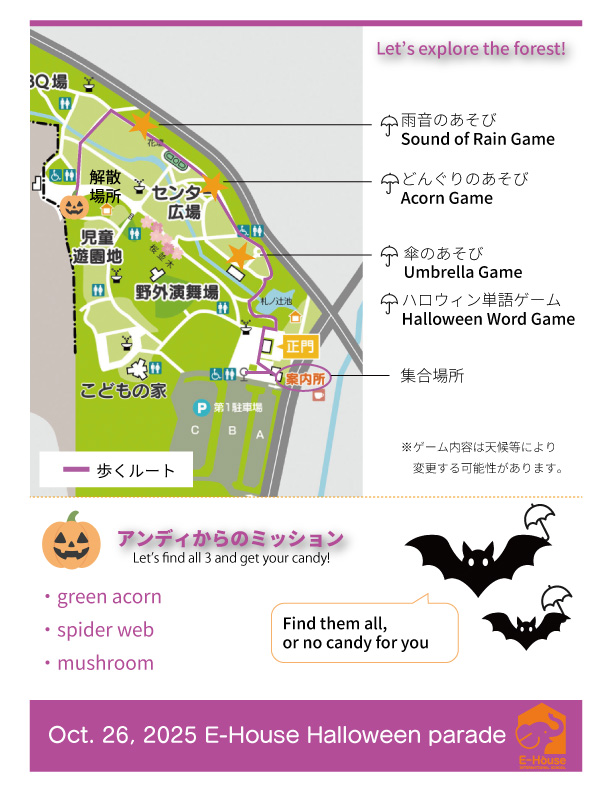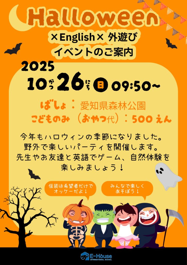 仮装と、野外遊びと、英語遊びをみんなで楽しみましょう!!